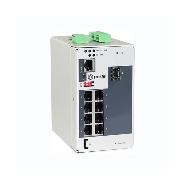 IDS-409-1SFP-XT Industrial Managed Switch, 9 ports: 8 x 10/100/1000Base-T Base-T RJ-45 ports and 1 x 100/1000BASE-X SFP slot (empty). -40 to 75C Industrial extended operating temperature.