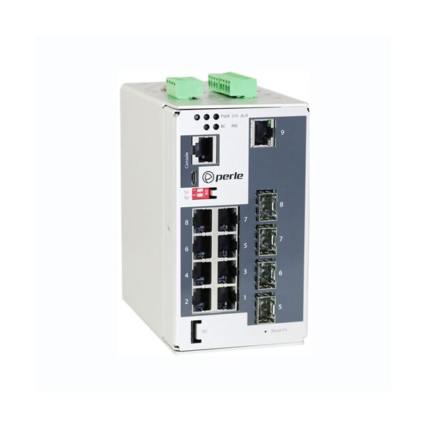 IDS-509CPP Industrial Managed Switch, 9 ports: 8 x 10/100/1000Base-T Base-T RJ-45 ports, 8 of which are all PoE/PoE+ capable, 3 of which are (100 Mbps and 1 Gbps) dual-purpose Combo ports (SFP or RJ45 PoE) plus 1 x dedicated (100 and 1000 Gbps) SFP slot. -10 to 60C operating temperature. PRO software feature set.