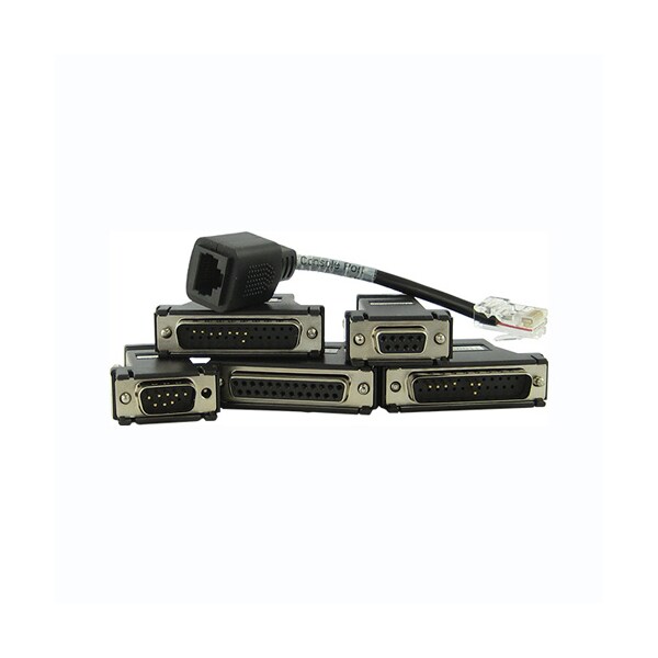 IOLAN C Model Wiring Starter Kit for IOLAN with Cisco pinout -- Kit Includes: (1) RJ-45 to DB-25 DTE Male adapter, (1) RJ-45 to DB-25 DCE Male adapter, (1) RJ-45 to DB-25 DTE Female adapter, (1) RJ-45 to DB-9Male DTE adapter, (1) RJ-45 to DB-9 Female DTE adapter and (1) RJ45M-RJ45F Cisco crossover adapter. This accessory is designed to be used with the IOLAN SCSC Console Server.