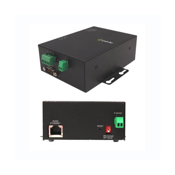 IOLAN DS1 D4 Ethernet I/O Device Server: four digital I/O, 1 x DB9M connector, software selectable EIA-232/422/485 interface, 10/100 Ethernet, IPv6, COM port redirector, 15kv ESD. Terminal block connectors for power and I/O.