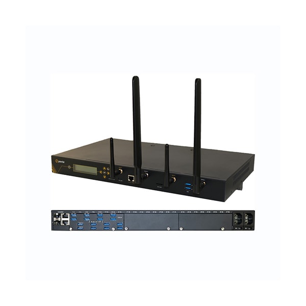 IOLAN SCG18 U-LAW Console Server: 18 x USB Ports, Front Panel Display and Keyboard, 2 x auto-sensing 10/100/1000 Ethernet Combo Ports (RJ45 or SFP), Cellular WWAN capability based on 4G LTE (America including AT&T and Verizon) with fallback networks (HSPA+, UMTS, EDGE and GPRS), Wireless LAN (WiFi) client IEEE 802.11 a, b, g, n @ 2.4Ghz/5Ghz,Mico SD Card Slot, Expandable using IOLAN G16 RS232 Card and IOLAN G16 USB Card, Micro USB and RS232 RJ45 Console Admin Ports, advanced data encryption, user authentication and event management security features included, IPv6, COM port redirector, 15kv ESD, Dual AC Power, USA power adapter included.
