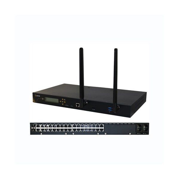 IOLAN SCG34 R-LA Console Server: 32 x RS232 RJ45 interfaces with software configurable Cisco pinouts, 2 x USB Ports, Front Panel Display and Keyboard, 2 x auto-sensing 10/100/1000 Ethernet Combo Ports (RJ45 or SFP), Cellular WWAN capability based on 4G LTE (America including AT&T and Verizon) with fallback networks (HSPA+, UMTS, EDGE and GPRS), Micro SD Card Slot, Expandable using IOLAN G16 RS232 Card and IOLAN G16 USB Card, Micro USB and RS232 RJ45 Console Admin Ports, advanced data encryption, user authentication and event management security features included, IPv6, COM port redirector, 15kv ESD, Dual AC Power, USA power adapter included.