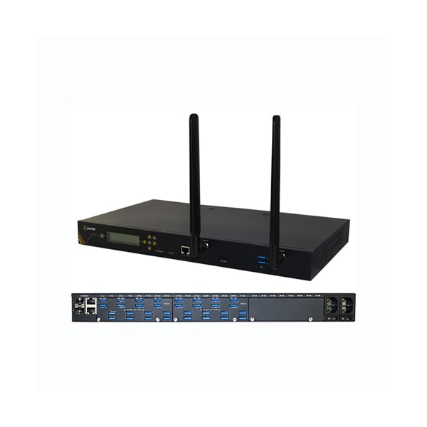 IOLAN SCG34 U-LA Console Server: 34 x USB Ports, Front Panel Display and Keyboard, 2 x auto-sensing 10/100/1000 Ethernet Combo Ports (RJ45 or SFP), Cellular WWAN capability based on 4G LTE (America including AT&T and Verizon) with fallback networks (HSPA+, UMTS, EDGE and GPRS), Micro SD Card Slot, Expandable using IOLAN G16 RS232 Card and IOLAN G16 USB Card, Micro USB and RS232 RJ45 Console Admin Ports, advanced data encryption, user authentication and event management security features included, IPv6, COM port redirector, 15kv ESD, Dual AC Power, USA power adapter included.