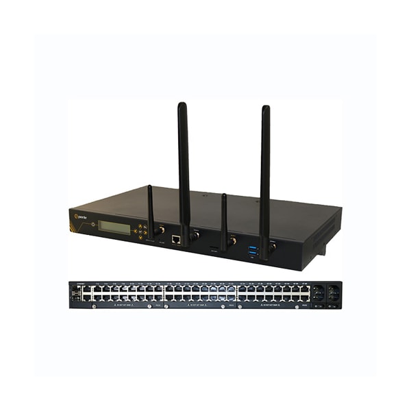 IOLAN SCG50 R-LAW Console Server: 48 x RS232 RJ45 interfaces with software configurable Cisco pinouts, 2 x USB Ports, Front Panel Display and Keyboard, 2 x auto-sensing 10/100/1000 Ethernet Combo Ports (RJ45 or SFP), Cellular WWAN capability based on 4G LTE (America including AT&T and Verizon) with fallback networks (HSPA+, UMTS, EDGE and GPRS), Wireless LAN (WiFi) client IEEE 802.11 a, b, g, n @ 2.4Ghz/5Ghz,Mico SD Card Slot, Micro USB and RS232 RJ45 Console Admin Ports, advanced data encryption, user authentication and event management security features included, IPv6, COM port redirector, 15kv ESD, Dual AC Power, USA power adapter included.