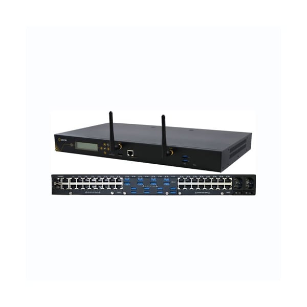 IOLAN SCG50 RRU-W Console Server: 32 x RS232 RJ45 interfaces with software configurable Cisco pinouts, 18 x USB Ports, Front Panel Display and Keyboard, 2 x auto-sensing 10/100/1000 Ethernet Combo Ports (RJ45 or SFP), Wireless LAN (WiFi) client IEEE 802.11 a, b, g, n @ 2.4Ghz/5Ghz,Mico SD Card Slot, Micro USB and RS232 RJ45 Console Admin Ports, advanced data encryption, user authentication and event management security features included, IPv6, COM port redirector, 15kv ESD, Dual AC Power, USA power adapter included.