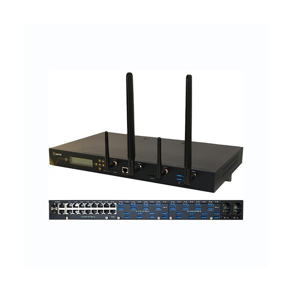 IOLAN SCG50 RUU-LAW Console Server: 16 x RS232 RJ45 interfaces with software configurable Cisco pinouts, 34 x USB Ports, Front Panel Display and Keyboard, 2 x auto-sensing 10/100/1000 Ethernet Combo Ports (RJ45 or SFP), Cellular WWAN capability based on 4G LTE (America including AT&T and Verizon) with fallback networks (HSPA+, UMTS, EDGE and GPRS), Wireless LAN (WiFi) client IEEE 802.11 a, b, g, n @ 2.4Ghz/5Ghz,Mico SD Card Slot, Micro USB and RS232 RJ45 Console Admin Ports, advanced data encryption, user authentication and event management security features included, IPv6, COM port redirector, 15kv ESD, Dual AC Power, USA power adapter included.