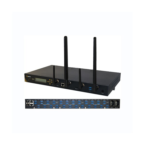 IOLAN SCG50 U-LAWM Console Server: 50 x USB Ports, Front Panel Display and Keyboard, 2 x auto-sensing 10/100/1000 Ethernet Combo Ports (RJ45 or SFP), Cellular WWAN capability based on 4G LTE (America including AT&T and Verizon) with fallback networks (HSPA+, UMTS, EDGE and GPRS), Wireless LAN (WiFi) client IEEE 802.11 a, b, g, n @ 2.4Ghz/5Ghz,integrated RJ45 V.92 modem, Micro SD Card Slot, Micro USB and RS232 RJ45 Console Admin Ports, advanced data encryption, user authentication and event management security features included, IPv6, COM port redirector, 15kv ESD, Dual AC Power, USA power adapter included.