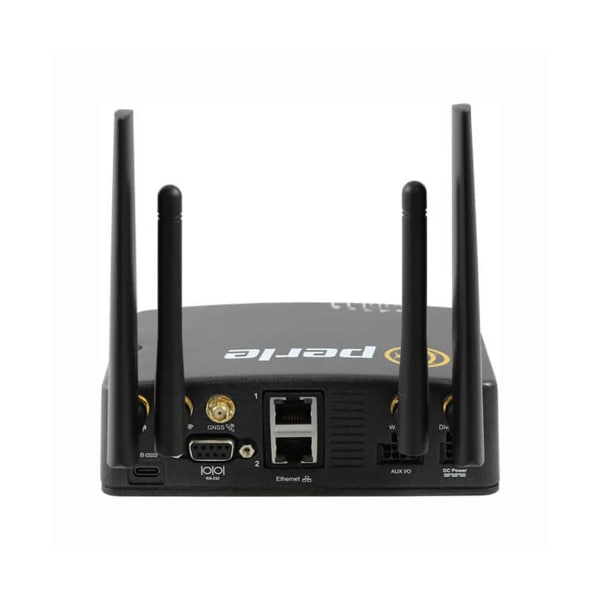 IRG5521+ LTE Router with integrated: LTE-A PRO (CAT12 600M / 150M), GPS/GNSS, Wireless LAN (2.4/5 GHz), 2 x 10/100/1000 RJ45 Ethernet, USB-C Port, RS232, GPIO, IGN (ignition sense pin), 2 x Digital Inputs, Alarm Relay, RS485 half-duplex, IP54 enclosure. GPIO Cable w/4 pin plug and LTE/WLAN antennas included.