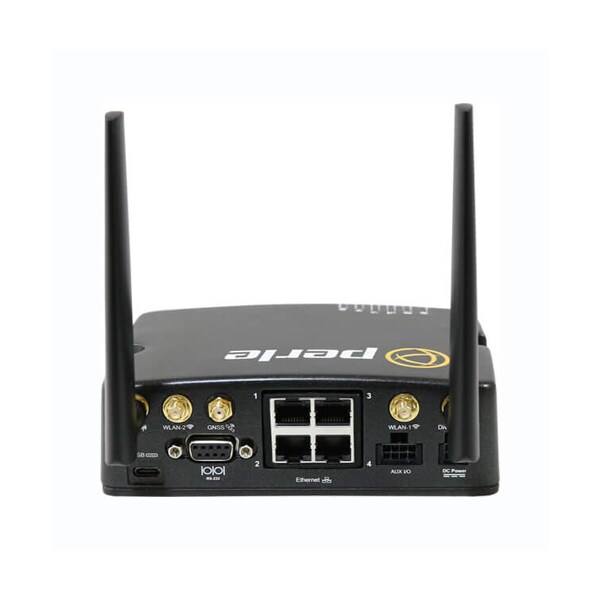 IRG5541 LTE Router with integrated: LTE-A (CAT6 300M / 50M), GPS/GNSS, Wireless LAN (2.4/5 GHz), 4 x 10/100/1000 RJ45 Ethernet, USB-C Port, RS232, GPIO, IGN (ignition sense pin), 2 x Digital Inputs, Alarm Relay, RS485 half-duplex, IP54 enclosure. GPIO Cable w/4 pin plug and LTE antennas included.