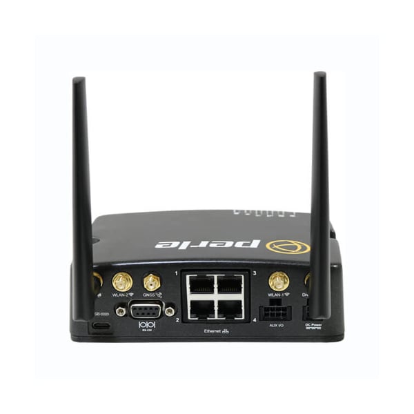 IRG5541+ LTE Router with integrated: LTE-A PRO (CAT12 600M / 150M), GPS/GNSS, Wireless LAN (2.4/5 GHz), 4 x 10/100/1000 RJ45 Ethernet, USB-C Port, RS232, GPIO, IGN (ignition sense pin), 2 x Digital Inputs, Alarm Relay, RS485 half-duplex, IP54 enclosure. GPIO Cable w/4 pin plug and LTE antennas included.