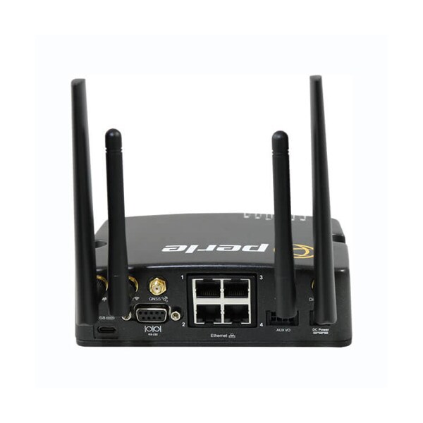 IRG5541 LTE Router with integrated: LTE-A (CAT6 300M / 50M), GPS/GNSS, Wireless LAN (2.4/5 GHz), 4 x 10/100/1000 RJ45 Ethernet, USB-C Port, RS232, GPIO, IGN (ignition sense pin), 2 x Digital Inputs, Alarm Relay, RS485 half-duplex, IP54 enclosure. North American power adapter and LTE/WLAN antennas included.