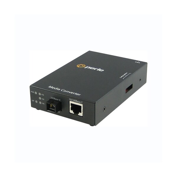 S-110P-S1SC40D - 10/100Base-TX Media and Rate Converter with PoE Power Sourcing: 10/100Base-TX (RJ-45) [100 m/328 ft.] to 100Base-BX 1550nm TX / 1310nm RX single strand fiber, single mode (SC) [40 km/24.9 miles] includes AC Power Adapter - USA Power Cord