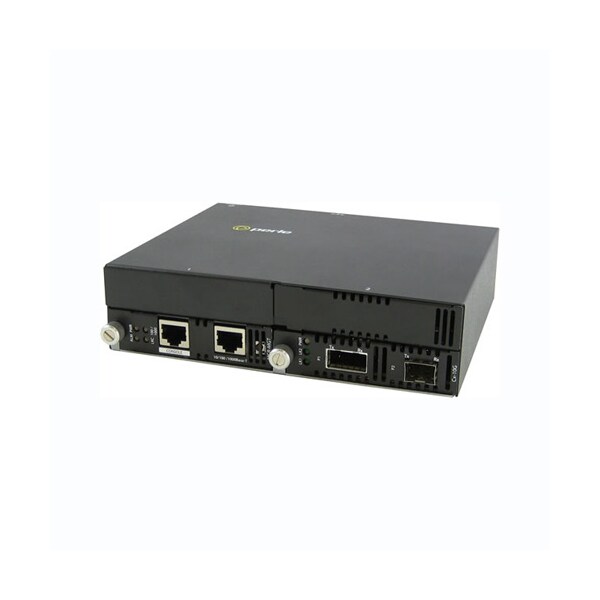 SMI-10G-XTS - Managed 10 Gigabit Media Converter with one XFP slot (empty) and one SFP+ slot (empty). AC adapter included - USA Power Cord