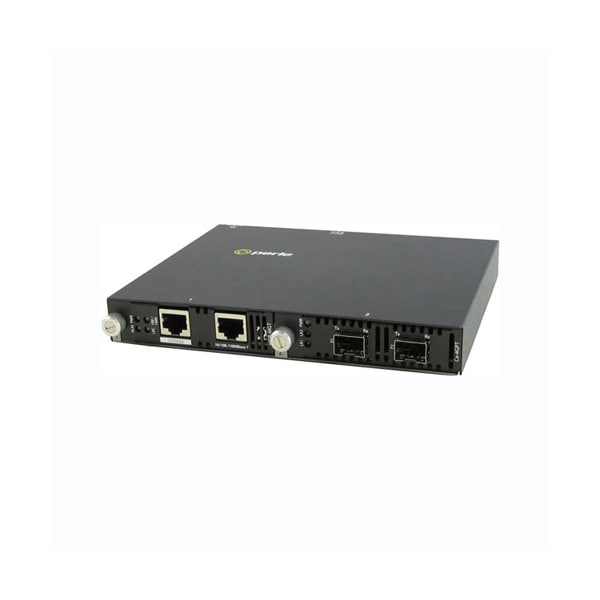 SMI-4GPT-DSFP - Managed Protocol Transparent Media Converter with dual SFP slots (empty). Supports two SFPs with identical speeds up to 4.25 Gbps. AC adapter included - USA Power Cord
