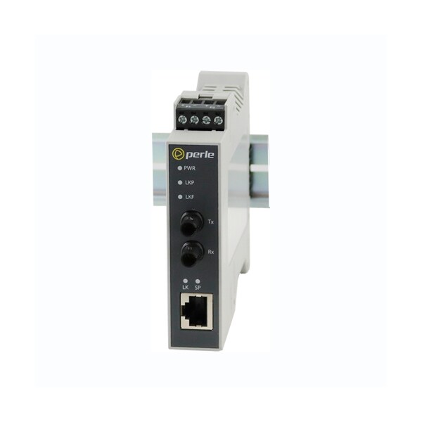 SRS-1110-FST40 - 10/100/1000 Industrial Media and Rate Converter: 10/100/1000BASE-T (RJ-45) [100 m/328 ft] to 100Base-LX 1310nm single mode (ST) [40 km/24.9 miles]. Ruggedized to IEC 61850-3/IEEE 1613, -40F to +167F (-40C to +75C) extended operating temperature support. DIN Rail case, terminal block (Combicon) power connector for external power source