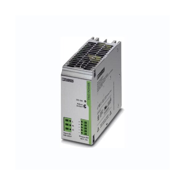 TRIO-PS/1AC/48DC/5 DIN-Rail Power Supply: 48 VDC, 240 Watt with universal 85 to 264 VAC, 30 to 56V DC output range adjustable, -25 to 70°C extended operating temperature.