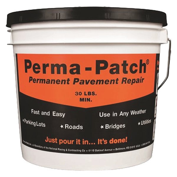 Cold Patch, Product Type Cold Patch, Base Material Limestone Asphalt Mix, Cure Type Pressure, Resistance Properties High Temperature Resistant, Product Form Solid, Container Size 30 lb, Container Type Pail, Coverage 3 sq ft @ 1 in, Maximum Crack Width Not Applicable, Maximum Thickness Not Applicable, Minimum Thickness 1/4 in, Maximum Traffic Hours Not Applicable, Application Road Repair, Color Black, For Use On Surface Material Asphalt, Concrete, Steel, Wood, Standards DOT Approved