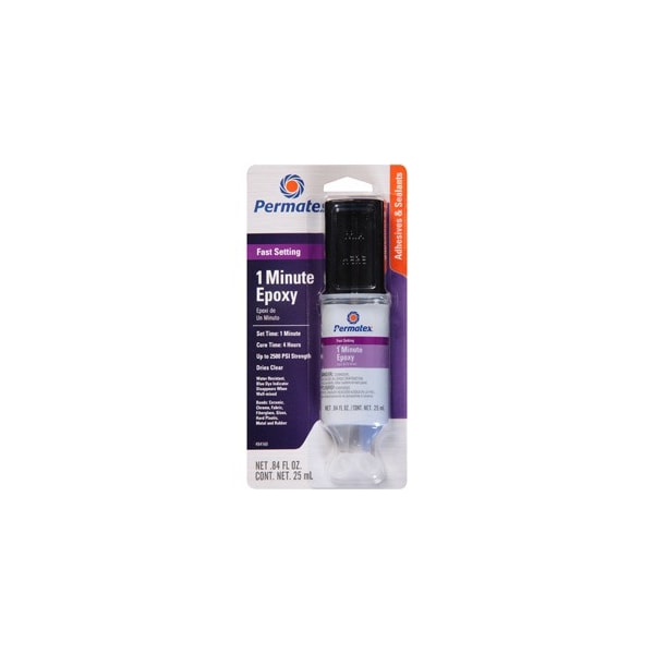 Permatex General Purpose 1 Minute Gel Epoxy is a fast setting, two-part adhesive and filler system specially formulated with a Blue Dye Indicator that disappears when it’s fully mixed and ready to use. The advanced gel formulation reduces mess and waste compared to traditional epoxies; unique indicator system takes the guesswork out of “ready to use”.