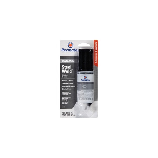 Permatex Steel WeldTM epoxy is a multi-metal epoxy adhesive that eliminates the need for welding or brazing and is resistant to water and solvents. This steel reinforced epoxy is ideal for sealing welded seams, filling metal cracks, and mounting metal components.