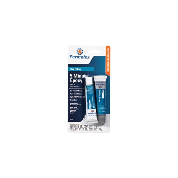 Versatile, easy-to-use, general purpose epoxy adhesive is two-part adhesive and filler system that eliminates the need for welding or brazing. Sets in five minutes, no clamping needed. Clear appearance. Fills gaps and will not shrink. Resistant to water and solvents. Temperature range -60F to 180F (-51C to 82C). Permanent strength up to 3400 PSI. Self-mixing dual syringe (84164) blends the adhesive and filler as it dispenses, eliminating the need for manual mixing.