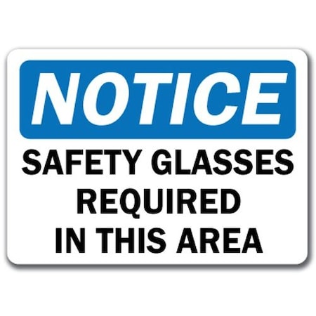 Sign-Safety Glasses Required In This Area-10in x 14in OSHA Safety Sign, 14" H, NS-Safety Glasses