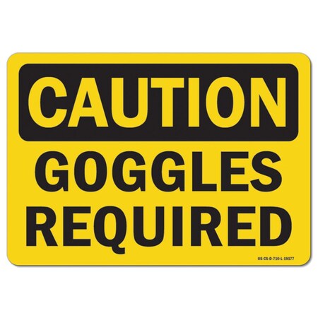 OSHA Danger Sign, Wear Goggles And Rubber, 18in X 12in Rigid Plastic, 12" W, 18" H, Portrait