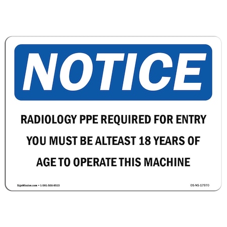 OSHA Sign, Radiology PPE Required For Entry You Must, 24in X 18in Decal, 24" W, 18" H, Landscape