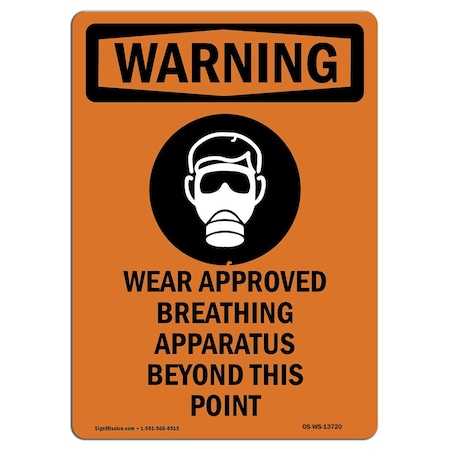 OSHA WARNING Sign, Wear Approved Breathing W/ Symbol, 7in X 5in Decal, 5" W, 7" H, Portrait