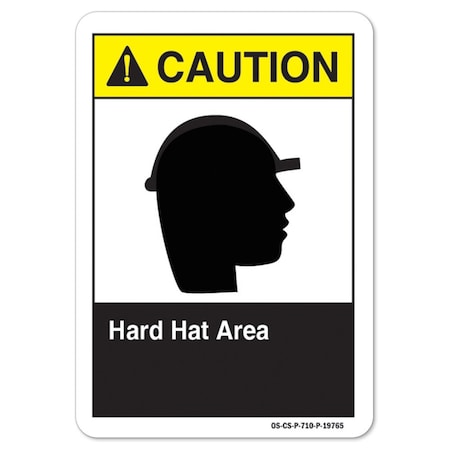 OSHA SAFETY FIRST Sign, Hard Hat Protection W/ Symbol, 24in X 18in Decal, 18" W, 24" H, Portrait