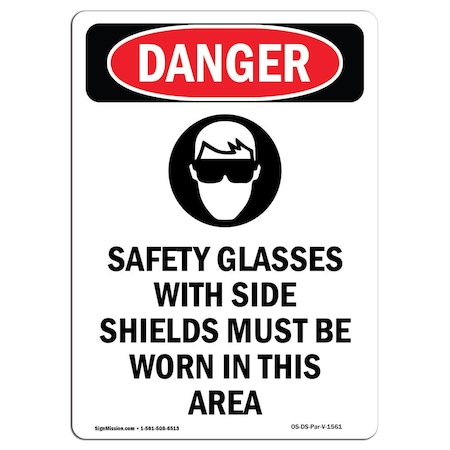 OSHA Danger Sign, Safety Glasses W/, 7in X 5in Decal, 5" W, 7" H, Portrait, OS-DS-D-57-V-1561