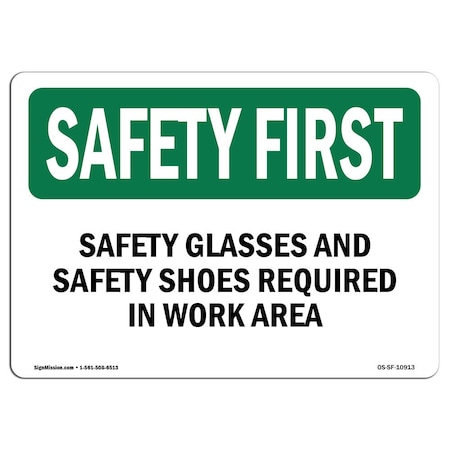 OSHA Sign, Glasses And Shoes Required, 14in X 10in Rigid Plastic, 14" W, 10" H, Landscape