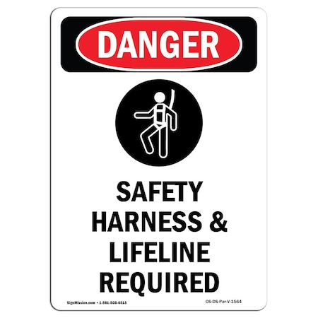 OSHA Danger Sign, Safety Harness And Lifeline, 18in X 12in Rigid Plastic, 12" W, 18" H, Portrait