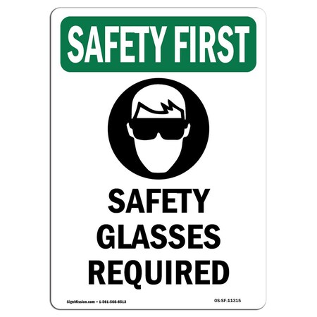 OSHA Sign, Glasses And, 24in X 18in Rigid Plastic, 18" W, 24" H, Portrait, OS-SF-P-1824-V-11296