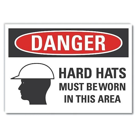 Hard Hat Danger Reflective Label, 7 in Height, 10 in Width, Reflective Sheeting, Vertical Rectangle
