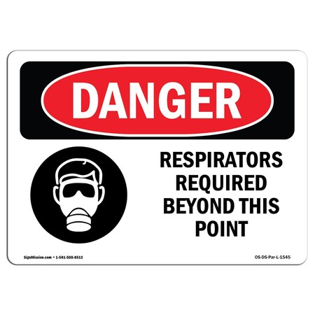 OSHA Sign, Respirators Required Beyond This Point, 5in X 3.5in, 10PK, 5" W, 3.5" H, Landscape, PK10