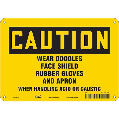 OSHA, Wear Gloves & Eye Protection When Cleaning, 14in X 10in Rigid Plastic, 14" W, 10" H, Landscape