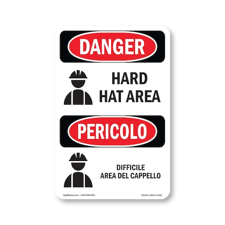 OSHA Danger Sign, Hard Hat Area Bilingual, 18in X 12in Rigid Plastic, OS-DS-P-1218-VI-1292