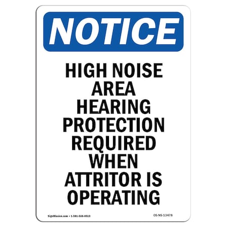 OSHA Notice Sign, High Noise Area Hearing Protection, 18in X 12in Aluminum, 12" W, 18" H, Portrait