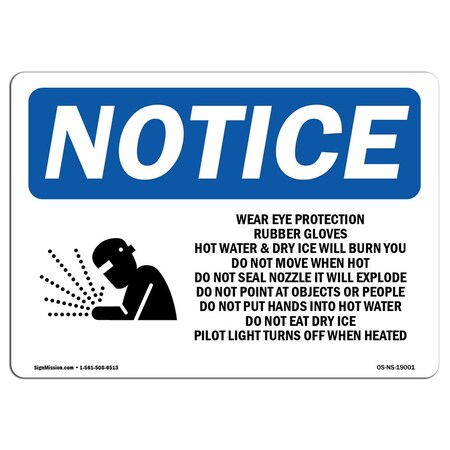 OSHA Sign, Wear Eye Protection & Rubber With Symbol, 14in X 10in Decal, 14" W, 10" H, Landscape