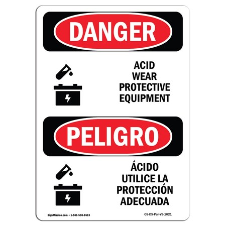 OSHA, Acid Wear Protective Equipment Bilingual, 24in X 18in Rigid Plastic, 18" W, 24" H, Spanish