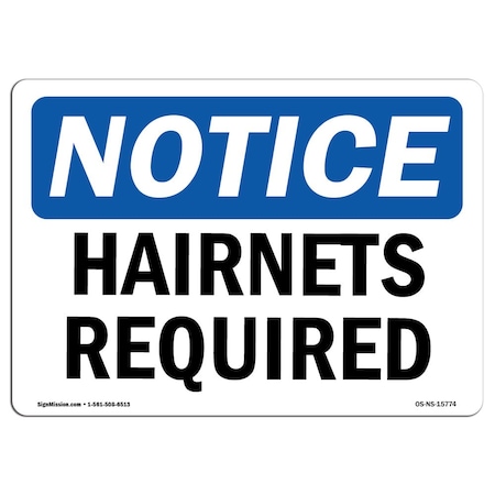 OSHA Notice Sign, NOTICE Hairnets Required, 24in X 18in Rigid Plastic, 24" W, 18" H, Landscape