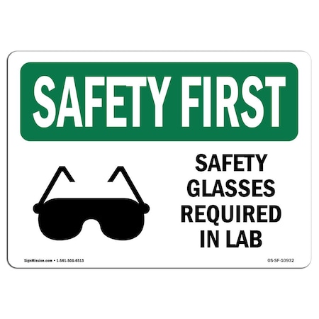 OSHA Sign, Glasses Required In Lab W/ Symbol, 10in X 7in Aluminum, 10" W, 7" H, Landscape
