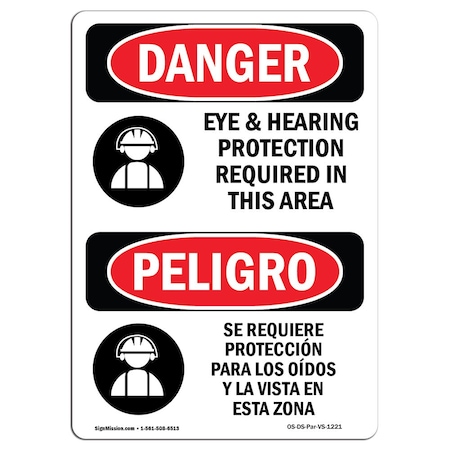 OSHA Danger, Eye And Hearing Protection Required Bilingual, 24in X 18in, OS-DS-A-1824-VS-1221