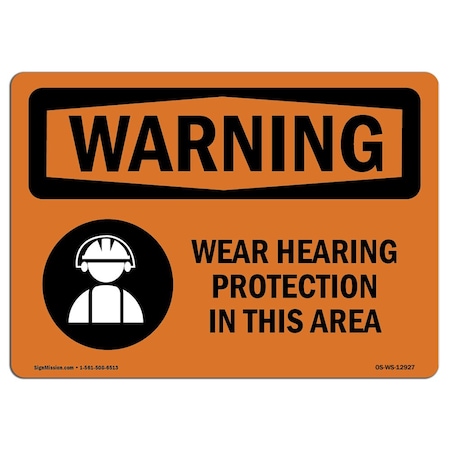 OSHA WARNING Sign, Wear Hearing Protection In This Area, 7in X 5in Decal, 7" W, 5" H, Landscape