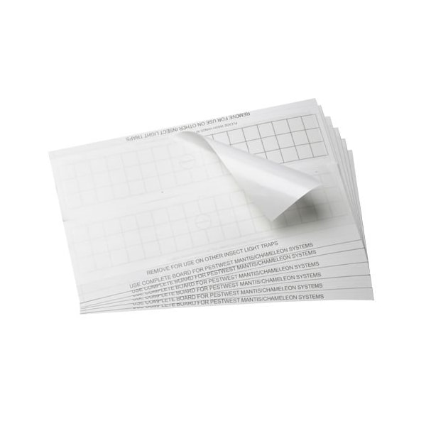 Pack of 6 multi-use glue boards, useable inside and outside of traps. Warp resistant, vivid white, insects are highly visible to identify and establish corrective treatment protocols, perforated premium card to fit a variety of traps. The pestwest universal glue boards are available in both discreet black and "high definition" white and have been used in a wide variety of applications even outside of the light trap. Used around homes and restaurants as an insect monitor, around plumbing monitoring insect access spots (scorpions, brown recluse etc) captures small invasive vertebrates, among many other uses. Certainly the preferred board for all non-chemical applications and is your watch-dog when you're not on the scene. Effective for 60 days (unless filled with insects), available in black or white and suitable for a wide variety of insect light traps in the market.