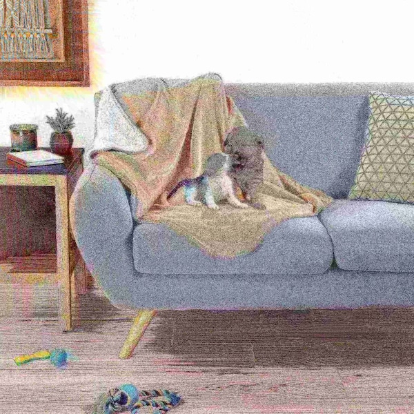 Protect your couch, bed, car seats, and flooring with the Waterproof Pet Throw Blanket from Pet Adobe. This 40 x 30-inch Sherpa lined fuzzy throw blanket has a waterproof flannel backing that prevents drool, urine, or other liquids from penetrating onto your furniture. The warm and cozy blanket also protects your chairs and sofas from pet hair and is machine washable.