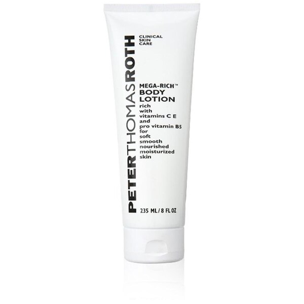 Peter Thomas Roth mega rich body lotion is rich with vitamins C, E and pro vitamin B5 for softer, smoother and more nourished, moisturized skin. This luxurious body lotion with a refreshing scent soothes and nourishes dehydrated skin. Leaves skin feeling soft, smooth and moisturized.