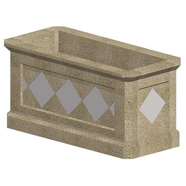 Planter Bollard, Shape Rectangle, Color Gray, Overall Height 28 in, Overall Width 27 in, Overall Length 58 in, Outside Diameter Not Applicable, Inside Diameter Not Applicable, Material Concrete, Finish Lite Sand Blast, Weight 1,200 lb, Wall Thickness 3 in