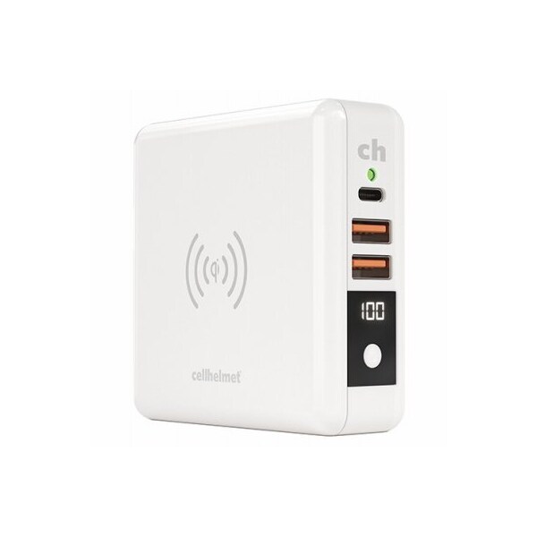 Travel stress free with cellhelmets Multi-Charge Pro 8000 mAh Power Bank and Qi Wireless Charger. Combine power and convenience with 1 portable charging solution Multi-Charge Pro provides 18 watts of charging with multiple outputs or 15 watts of fast wireless Qi charging. With 2 USB-A and 1 USB-C connection you can conveniently charge your devices anywhere and anytime!