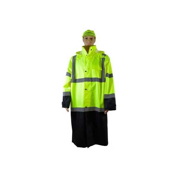 Petra Roc 48" Two Tone Waterproof Rain Coat, ANSI Class 3, Lime/Black, Size 3XL